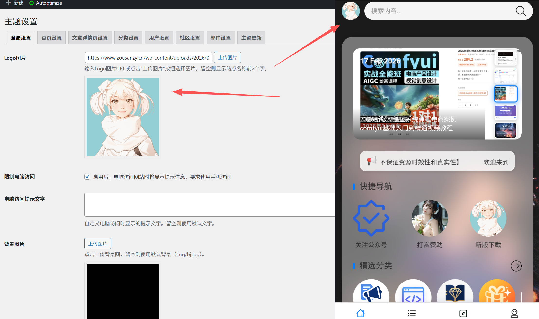 上传之后可替换修改前端访问背景图