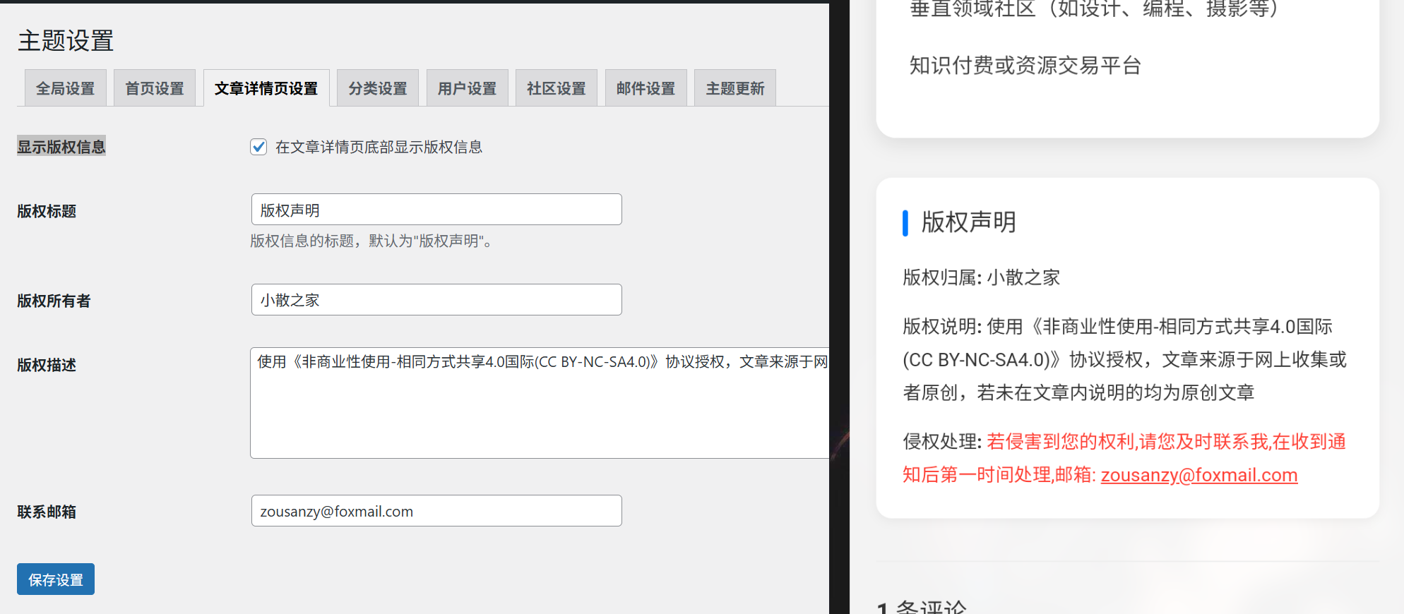 文章详情页设置